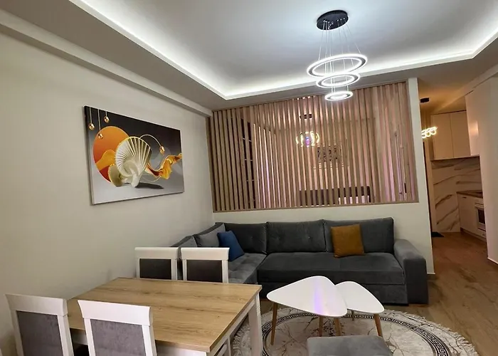 Tento apartmán o rozloze 60 m^2 se nachází 20 km od letiště Mezinarodni letiste Martky Terezy v Tirane.